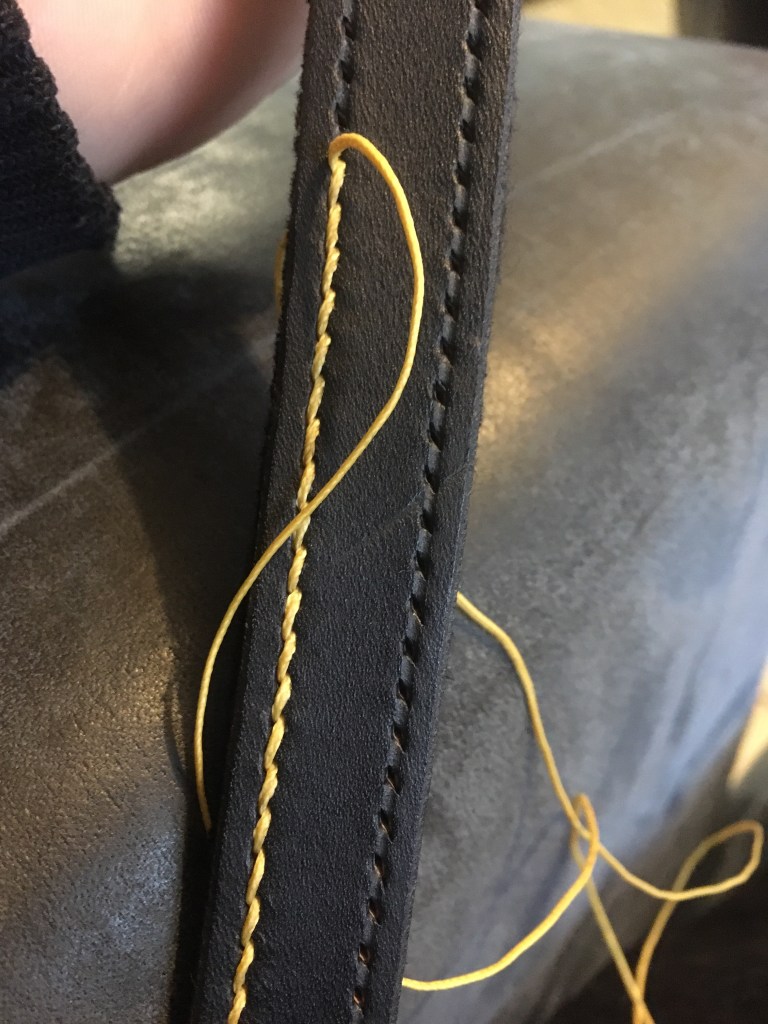 I mostly work with uncoloured leather, the colour is applied after a piece has been prepared and prior to polish. This method has its advantages, but recently I started laminating felt to the rough side. The felt was applied prior to colour and during the process the felt held colour pigment, this pigment contaminated the stitching staining the thread. A new process was now needed. It took some time but I finally developed one. End result clean stitching.