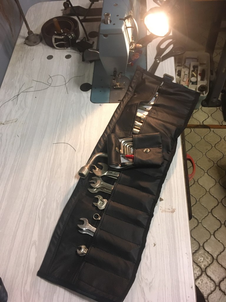 Here is a Vinyl Tool Pouch Ive just completed for a motorcycle. It also has a small pouch for Allen keys and test lamp.