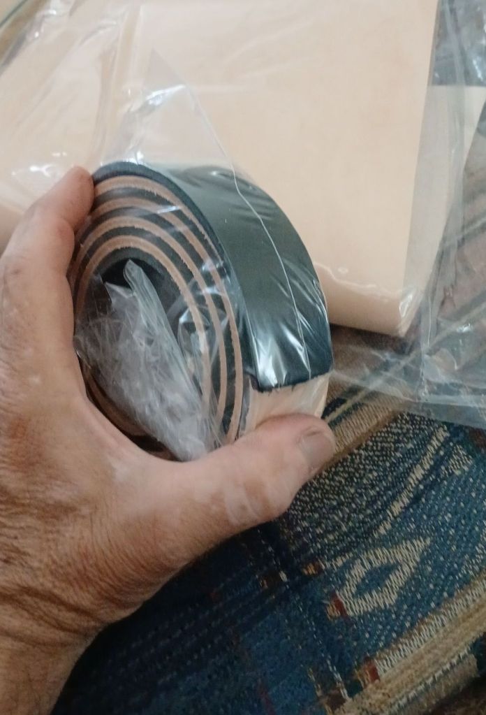 Selecting pre cut and prepared leather makes the job quick and easy. This is a good way to get started. For the purpose of this project I will use a pre cut naturally tanned peice of cow hide. Approximately 4mm in thickness and 38mm wide. The pre cut lengths are as long as the hide, so you can make a very long length belt. These pre cuts can be purchased from any leather craft supplier just about any width and common colour.